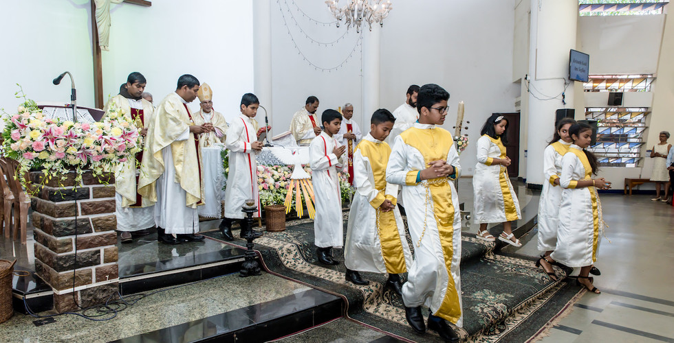 The solemn mass was celebrated by his Grace Most Rev. Archbishop Philip Neri Ferrao along with the secretary to the Archbishop, Rev. Fr. Joaquim Loyola Pereira and other clergy from our parish as con-celebrants. On arrival, his Grace obliged for a photograph with the children and then proceeded to prepare himself for Holy Mass which commenced at 10.00 am. Rev. Fr. Loyola Pereira in his homily resoundingly told the children that it was time to say a HELLO and certainly not a goodbye. He said the youth must evangelize by living the message of Jesus Christ every day. At times, he said, it may be challenging but we must not refrain from seeking Our Blessed Lord's grace at all times.